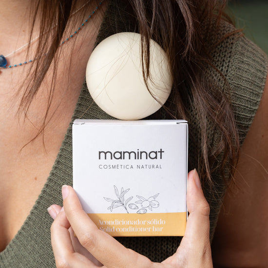 El acondicionador sólido de Maminat es el aliado perfecto para hidratar, nutrir y desenredar tu cabello tras el lavado con nuestros champús naturales.