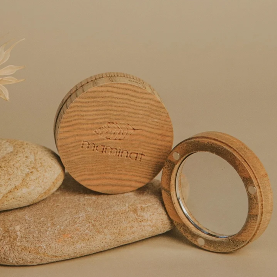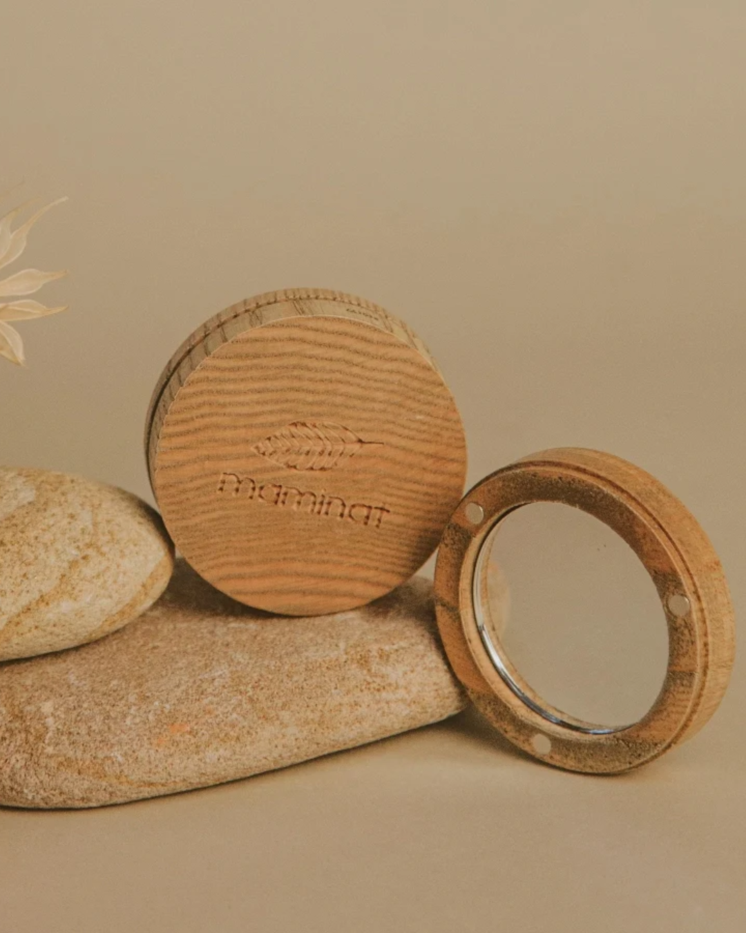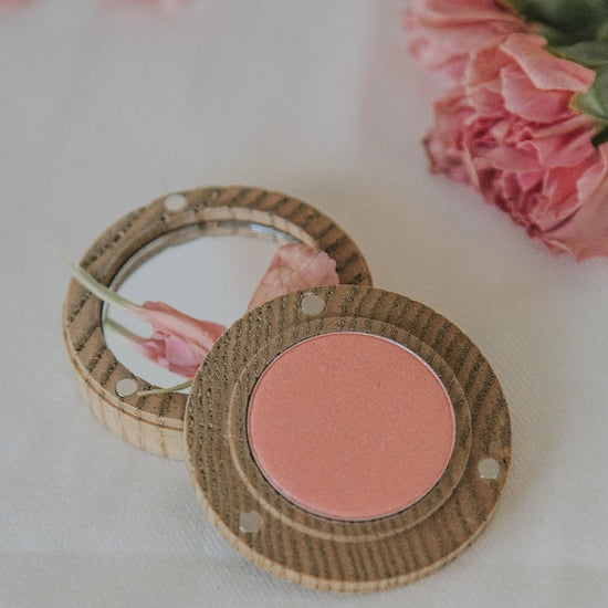 El estuche en el que viene tu colorete es de madera e incluye un espejito para que puedas repasarte una vez lo utilices.
