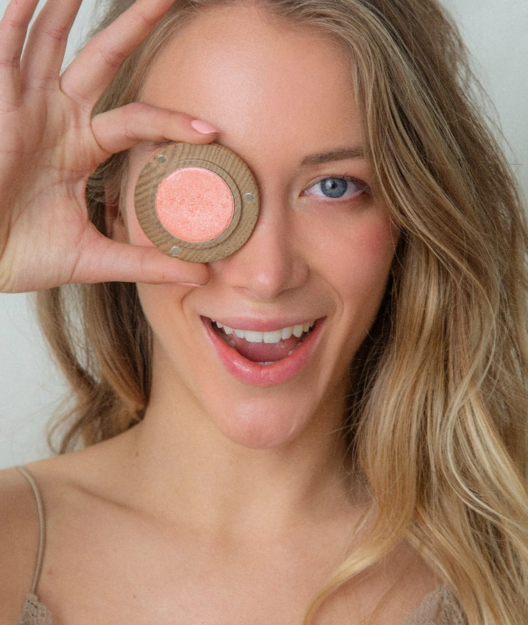 Los polvos de colorete de Maminat están libres de talco y el colorete melocotón queda fenomenal en la zona de pómulos pero, si sabes maquillarte, podrás utilizarlo también en zonas distintas en las que buscas un poco más de luz.