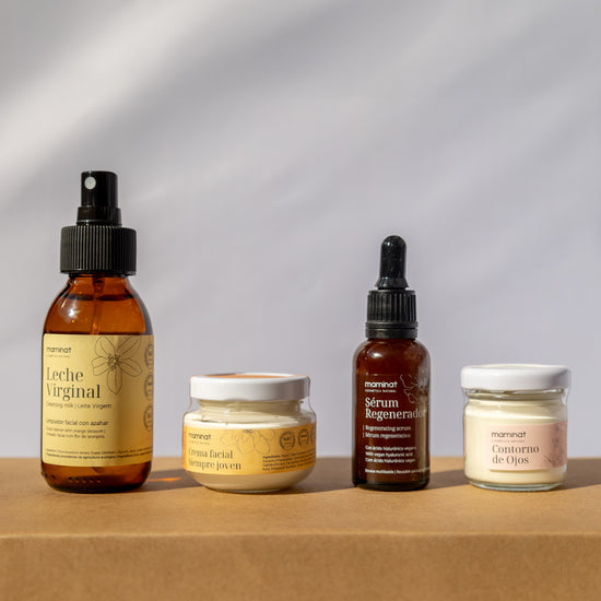-Una crema facial de Maminat (debes seleccionar la que necesitas según el tipo de piel y edad). Recuerda que las hidratantes están pensadas para pieles más jóvenes y las siempre joven para pieles más maduras y exigentes.