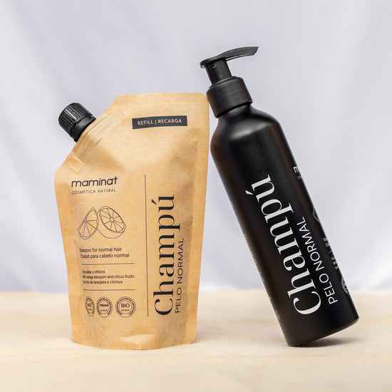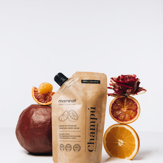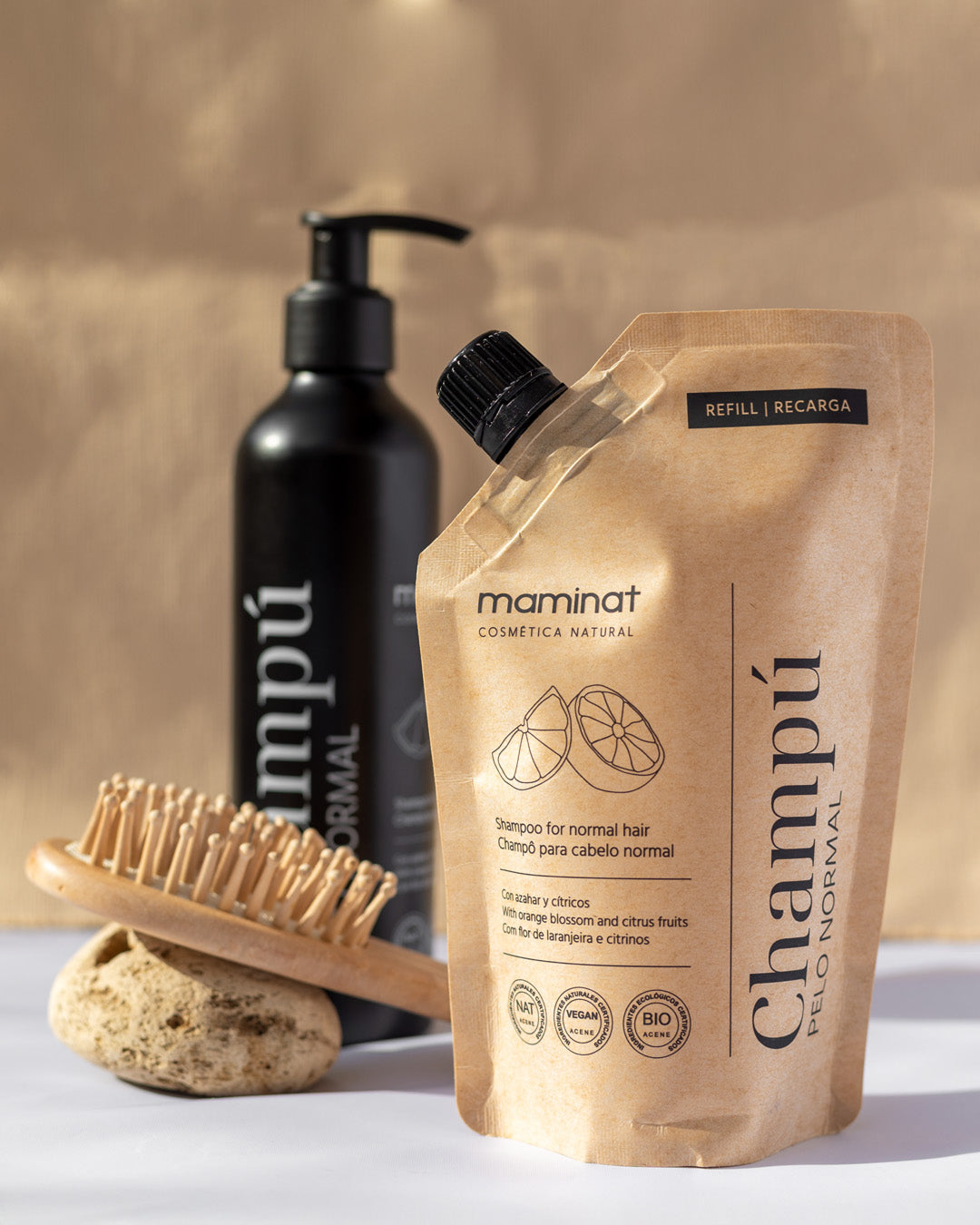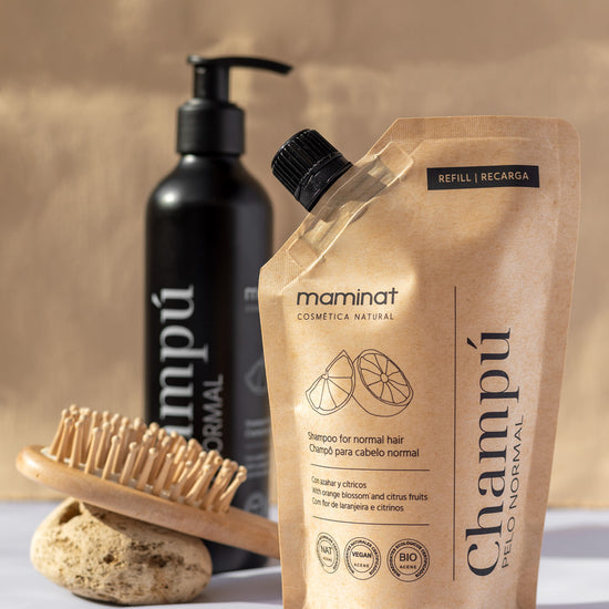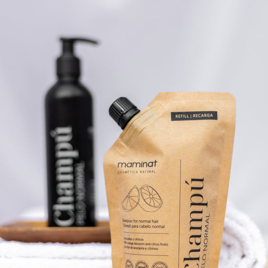 The Refill of Maminat’s Natural Shampoo for Normal Hair (250 ml) keeps the same natural formula as the original shampoo, but in a more sustainable format: biodegradable kraft packaging and zero plastic, ideal for refilling your bottle and reducing waste.