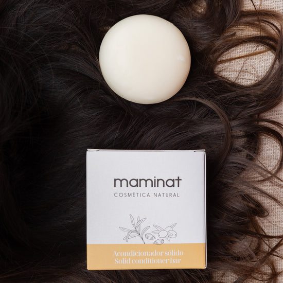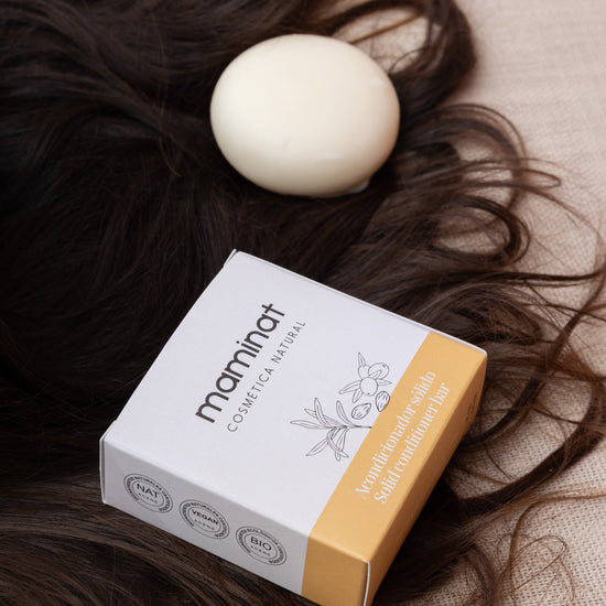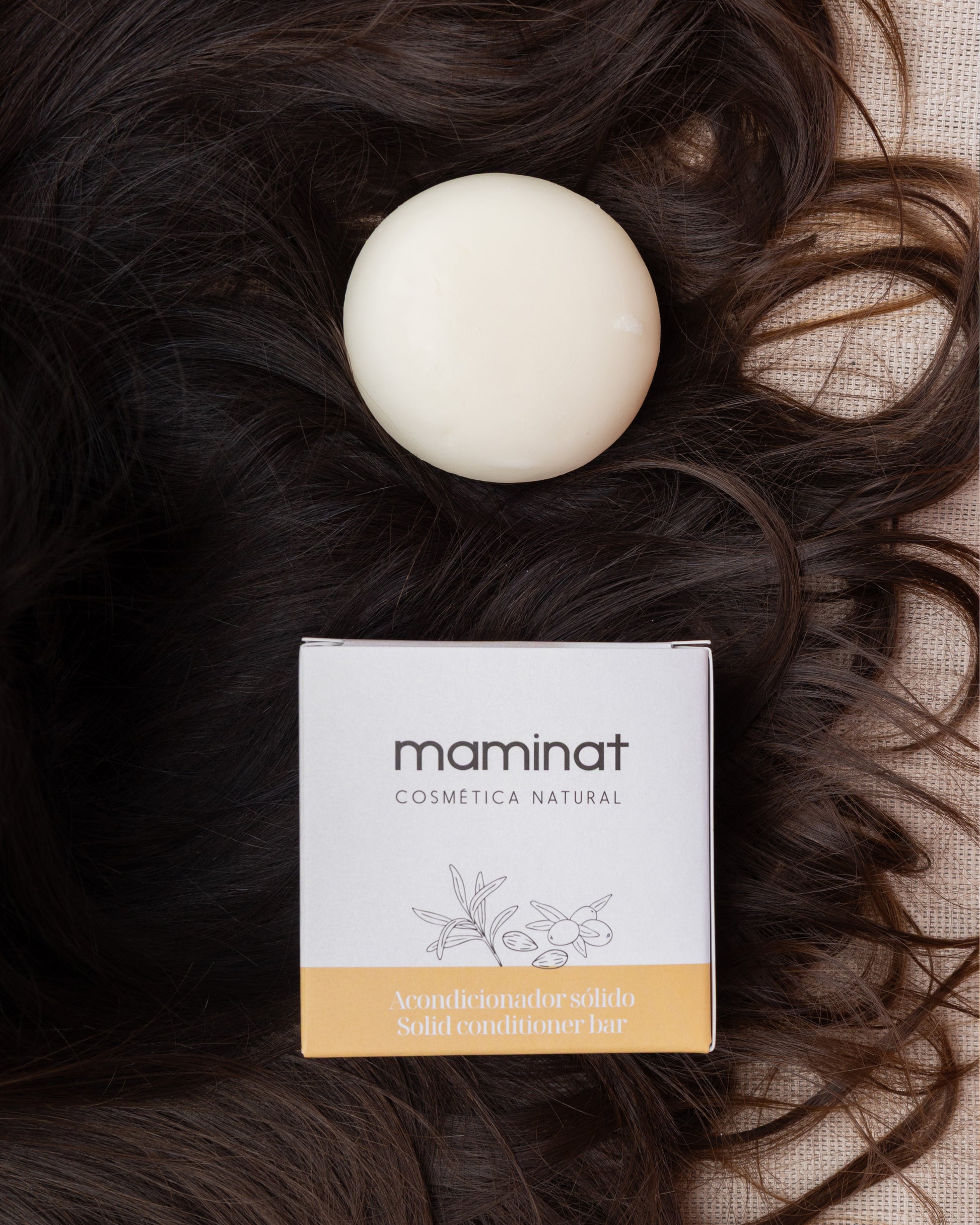 El acondicionador sólido de Maminat es el aliado perfecto para hidratar, nutrir y desenredar tu cabello tras el lavado con nuestros champús naturales.